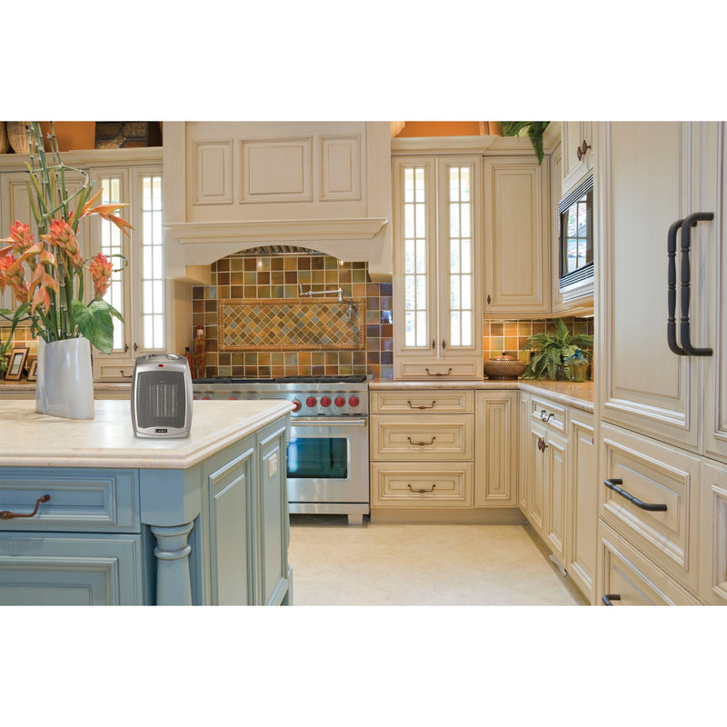 The Lasko 1500 watt ceramic compact heater features high and low heat settings, as well as a fan-only setting so you can choose how much heat you want. The adjustable thermostat allows you to maintain your preferred temperature setting and the automatic overheat protection helps provide peace of mind. The heater also includes convenient carry handles for portability.